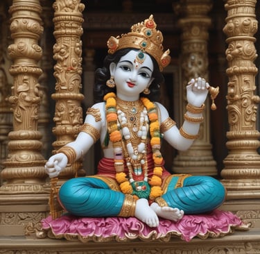 Shree Krishna Hindu dharm ke ek mahaan aur purn avatar hain. Woh prem, karuna, gyaan aur dharm ke pratik hain. Unki leelaayein aur updesh humein jeevan ko sahi disha mein jeene ki shiksha dete hain. Bhagavad Gita ke madhyam se unhone humein karm, bhakti aur gyaan ka marg bataya.